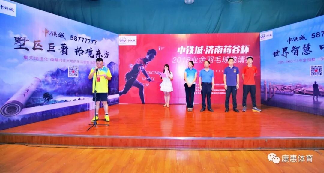 7月28日,中铁城·“济南药谷杯”2018业余羽毛球邀请赛开幕式在济南市美视佛雷斯羽毛球俱乐部举行,来自高新区各单位的共计34支代表队的三百多名运动员参赛。济南市高新技术创业服务中心副主任王岩、山东鲁信康惠有限公司总经理、山东省羽毛球协会副秘书长孔祥烨、美视佛雷斯羽毛球俱乐部总经理孙艳华、中铁城·“济南药谷杯”2018业余羽毛球邀请赛编排长房继业出席了开幕式。